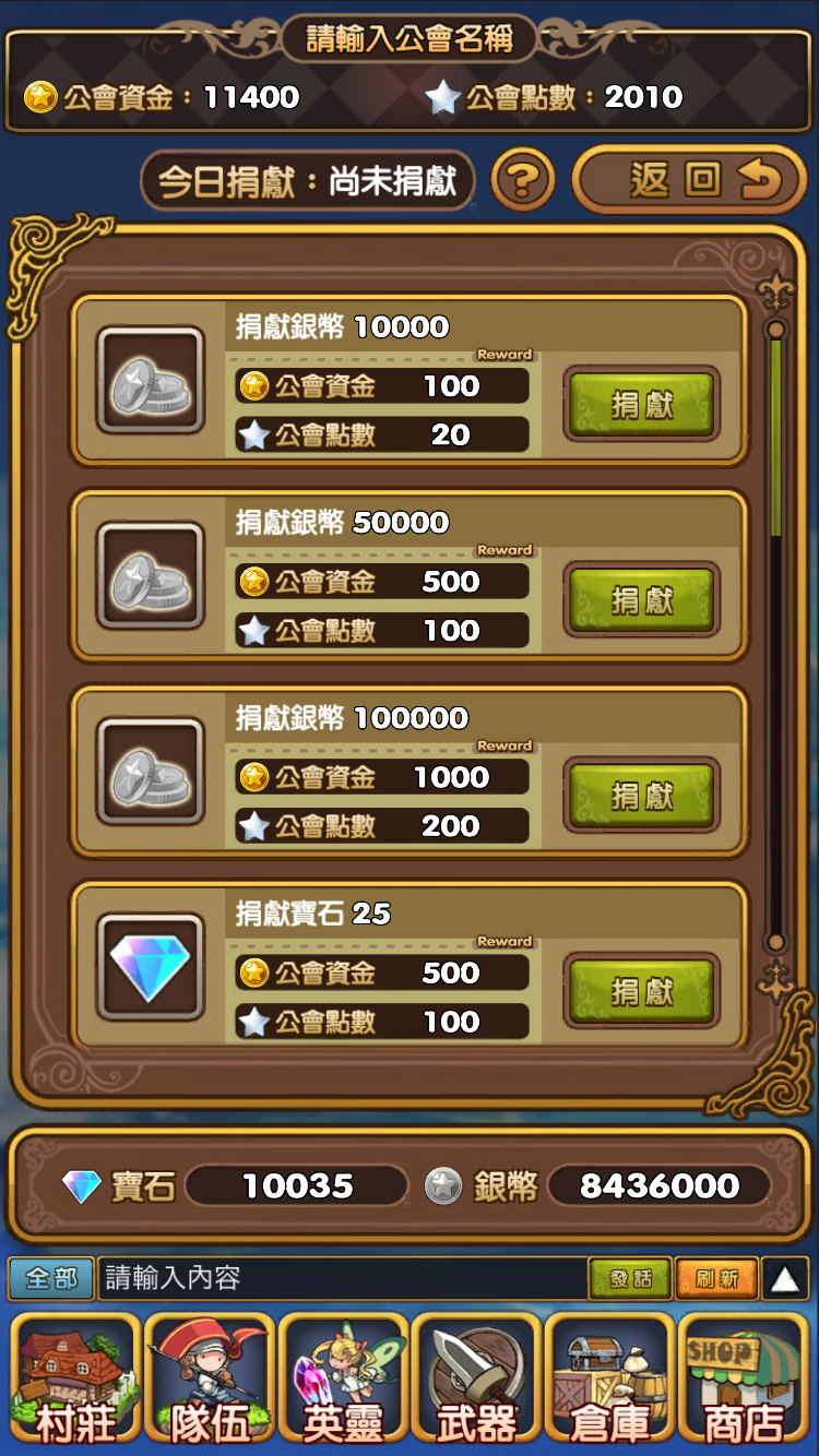 公會位置在左手邊~捐獻銀幣可以獲得公會點數!