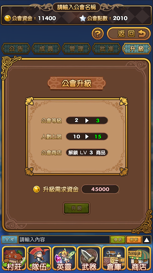 用金幣升級公會,商店能買到的道具就愈多喔!