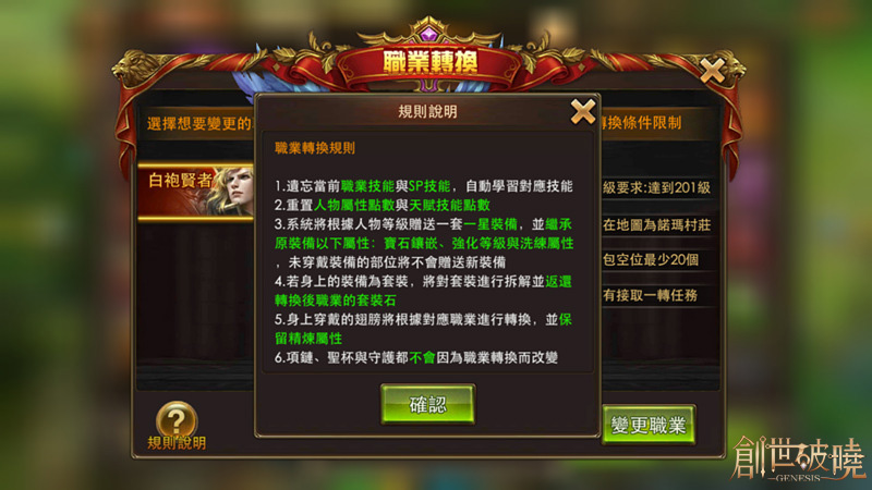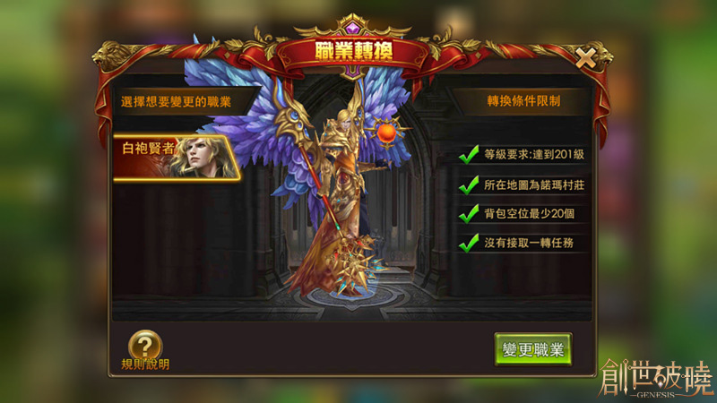 【image7】達到201級的非法師職業玩家可以通過轉職體驗法師,但需要滿足以上條件