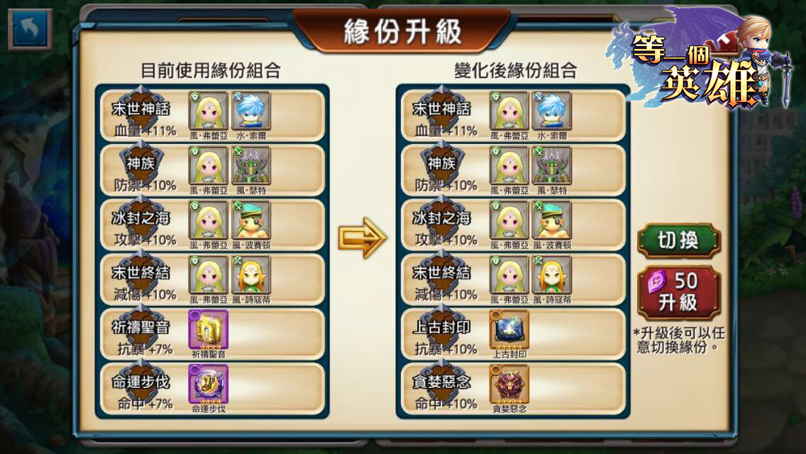 緣份升級,告別單一緣份加成
