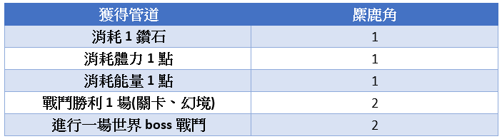 告別其他手機遊戲機率掉落,只要遊戲期間戰鬥、消耗體力、消耗能量等等皆可以百分之百獲得麋鹿角,除此之外,獲得的麋鹿角還可以兌換遊戲內的超值物品,甚至連超強英雄及聖誕特殊英雄【 暗.哈蕾鹿亞】都可以於兌換中取得。