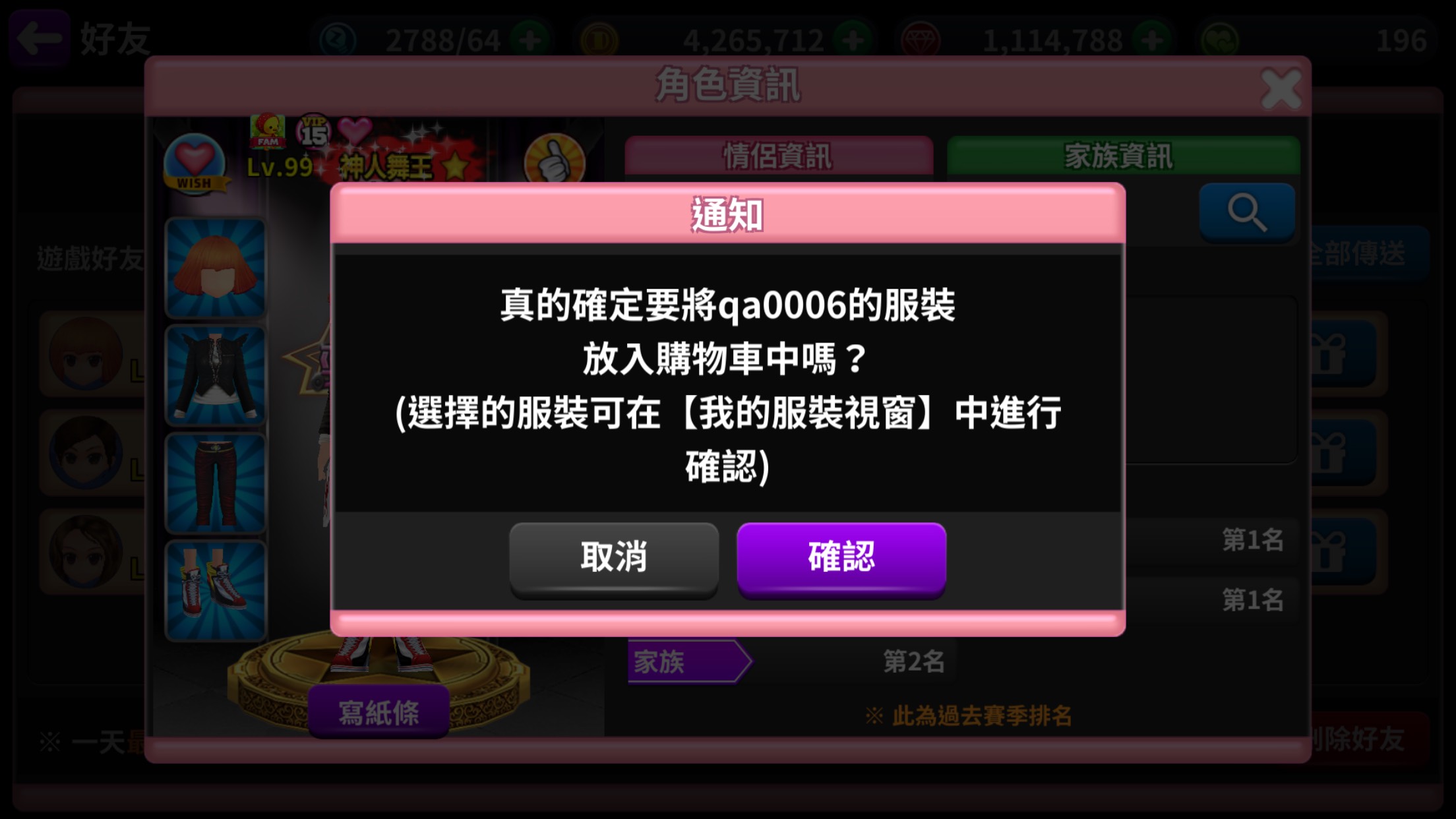 玩家可透過點選角色資訊來進行「時裝達人」投票