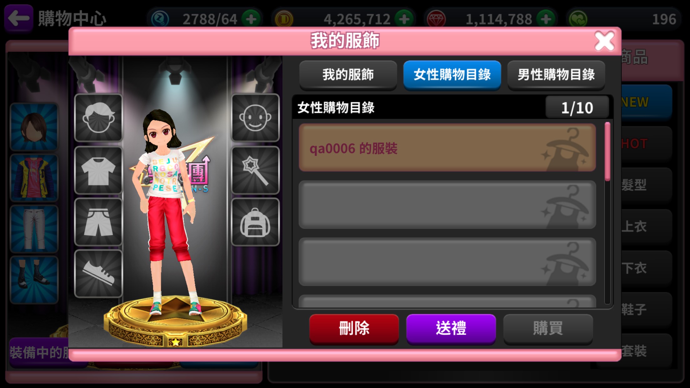 「購物車」目錄會顯示玩家已登載的服裝與飾品