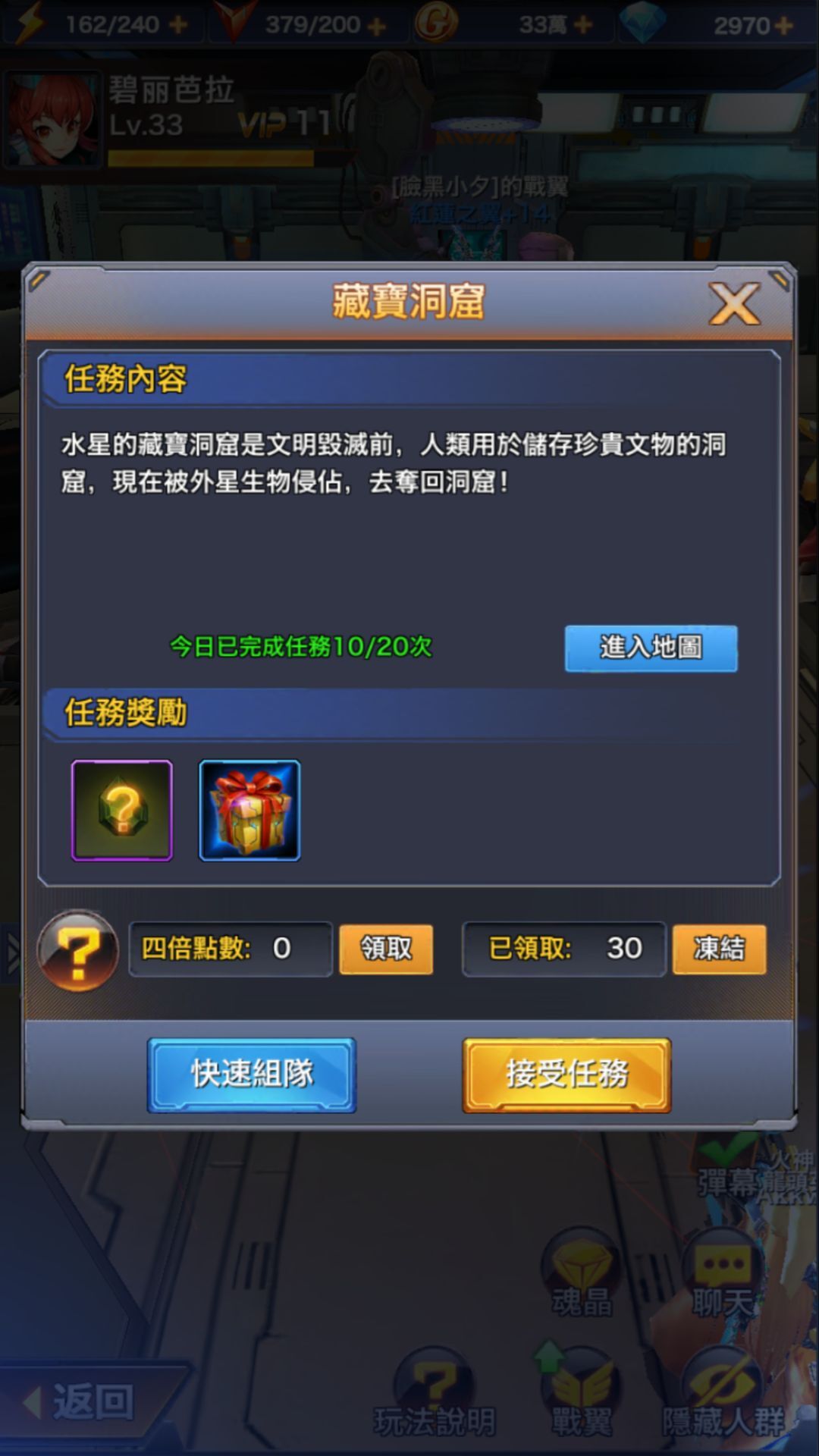 值得注意的是,玩家們組隊進入「星際探險」的每日次數是有限制的。在闖關時請務必小心謹慎,不要錯失了4倍經驗和超多任務道具!