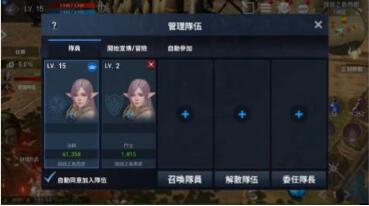 為了更快速的擊敗強大的怪物和首領,玩家可使用「組隊」系統招募伙伴,一同擊敗強大的戰場首領。建立或加入隊伍時,可依據戰鬥需求和作戰地區,與目標相同的玩家自動組隊,快速、方便的隊伍系統將在解任務、衝等時派上用場。