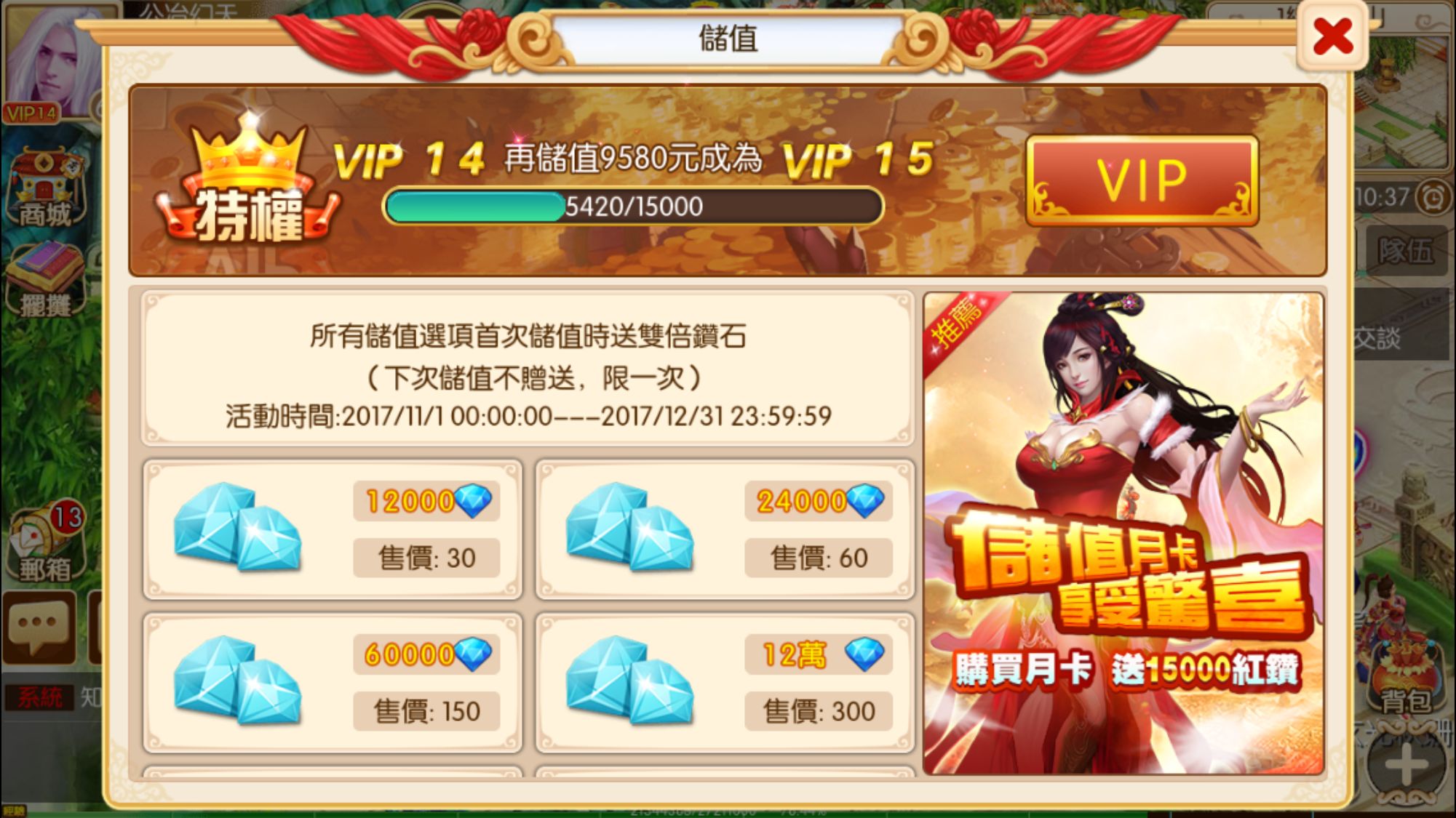 3.首次儲值贈送雙倍鑽石(2017/12/31前)