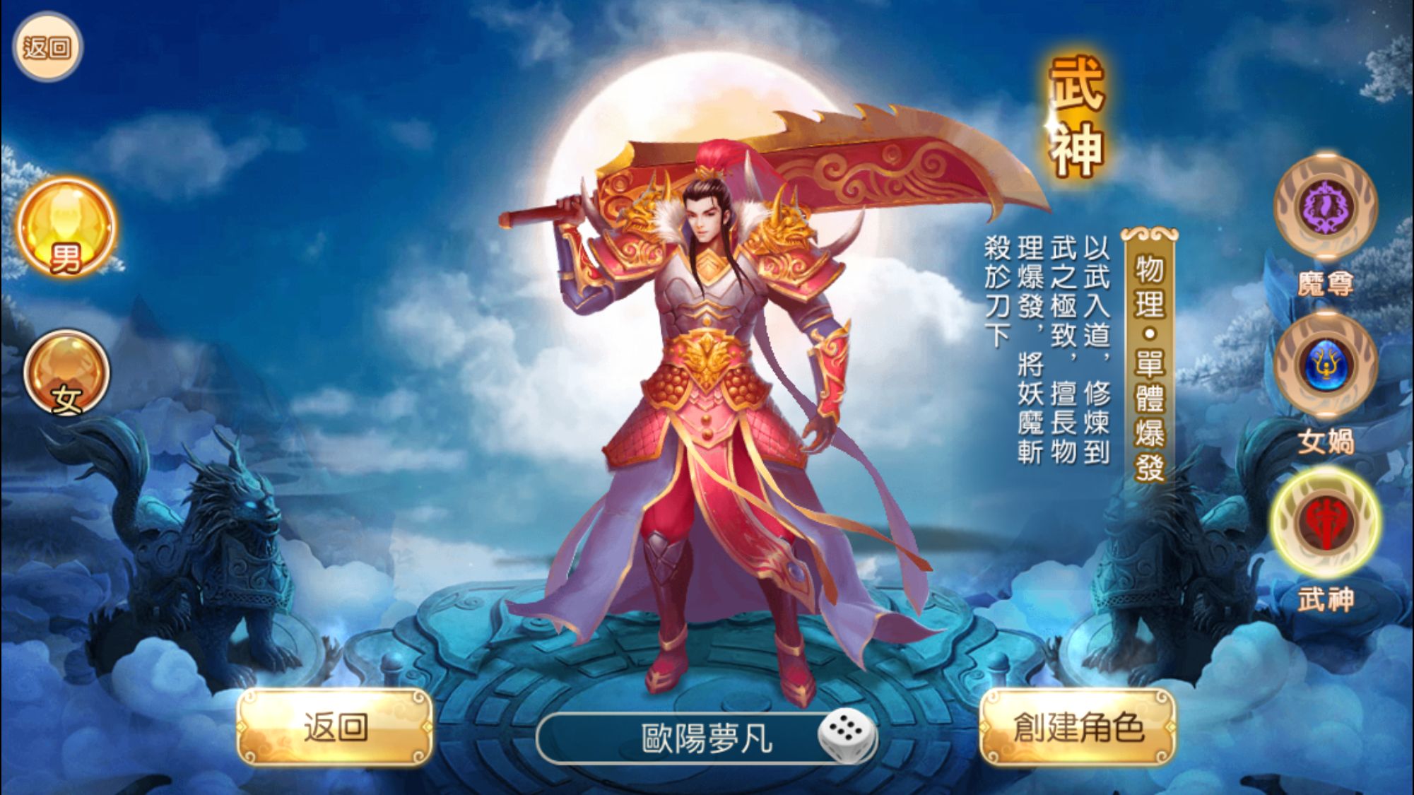 玩家可以根據自己的喜好選擇武神、女媧、魔尊三種職業之一,無論是正義威武的武神、空靈超脫的女媧,還是邪魅狂傲的魔尊,都具備獨一無二的技能和天賦,在戰鬥中展現出不一樣的實力和風采。
