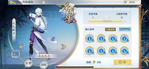 角色可以在「角色」→「強化」→「融合」中透過融合心魄或其他角色提升經驗和等級。融合需要消耗一定數量的劍玉(遊戲中的貨幣)和融合素材,使用與角色同屬性的融合素材能獲得更多的經驗值,也會消耗更多的劍玉。