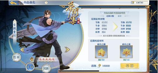 每次開花需要消耗一定數量的劍玉和角色同屬性的花開材料。花開材料主要透過活動關卡中的「花之谷」獲得。「花之谷」同樣分初級、中級、高級三種難度模式,每種模式都有陰、陽、剛、柔四種屬性的關卡。