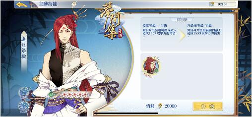 重複的角色可以用來提升角色技能。在「角色詳情」介面,點擊右上角的「技能」按鈕,就可以進行技能升級。每次升級角色的技能效果都會有一定程度的提升,最高可以升到9級。
