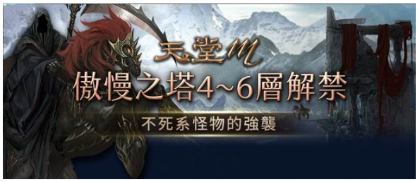《天堂M》副本地圖「傲慢之塔」即日起開放新樓層4到6樓,新增的樓層不僅怪物更強,打怪獲取的經驗值也較高,為了讓玩家提高練功效率,增加更多「不死族怪物」群。同時,4到6樓各樓層也推出全新BOSS,包括:4F「死亡的殭屍王」、5F「地獄的黑豹」,與6F「不死的木乃伊王」,擊殺BOSS將有機會獲得傳說級的裝備「激怒手套」或「木乃伊王的王冠」、黑妖最強技能「破壞盔甲」、妖精專屬強大技能「大地屏障」、「英雄製作秘笈」、「受祝福/詛咒的對武器/盔甲施法的卷軸」…等超稀有虛寶。