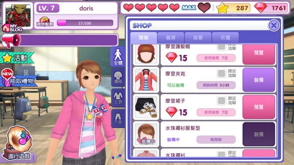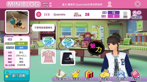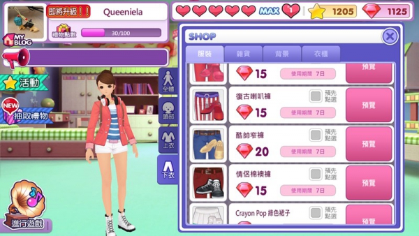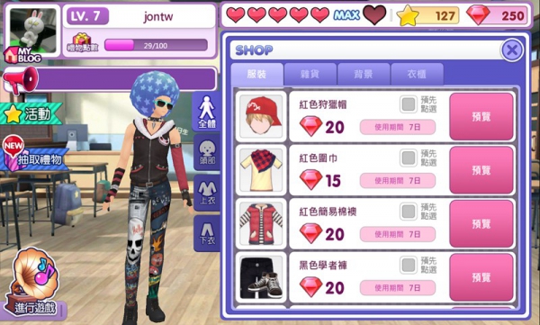 戀愛之星 》遊戲中還提供「戀愛即時樂」功能,玩家只要花少量的遊戲幣或是紅寶石,就有機會可以獲得各種高級潮流服裝,以及個人戀愛部落格裡的背景風格。