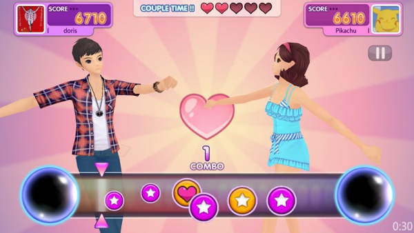 在「即時互動戀愛舞蹈模式中」,結合遊戲中的「泡泡星模式」以及「節奏星模式」,每位玩家將有獨立的「戀愛分數」,只要獲得的 Combo 連擊數越高,就能夠獲得越高的戀愛分數!但是想獲得高分數也沒有那麼容易,《