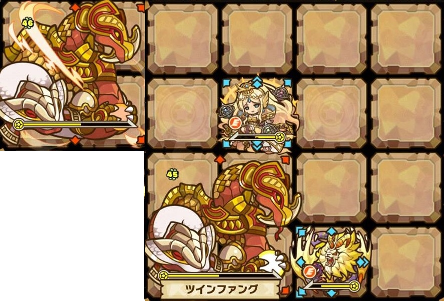 這次都由光古獸開始說起,這次的古獸感覺相對比較地容易,先制技能會加暴擊,不過只要速戰速決就不怕了,而Boss依舊會懂得扣減玩家的攻擊力,因此奇美技或青龍的技能非常有用,至於隊伍方面很推薦暗隊快攻,因為除了左右兩格是致命技能之外,基本上站在Boss的上下方都能減低被秒殺的機會,而值得注意的是,Boss懂得回血技能,所以才推薦速攻的暗隊。