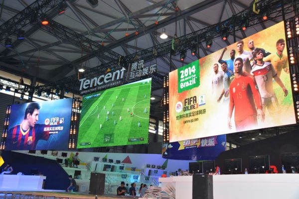 騰訊今年佈置了 90 台終端設備,包括 70 台電腦、7 台 iPad,以及全景拍照系統和為《戰爭雷霆》準備的模擬飛行器。