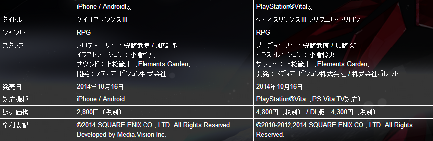 Square Enix預定於10月16日同步發售手機版與PSV版的遊戲《 混沌之環 III 》在今日(8月7日)正式公開官方網站。同時也揭載了故事劇情、主要人物與遊戲畫面等訊息。