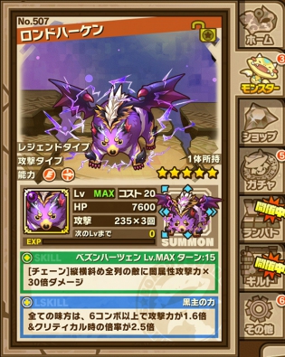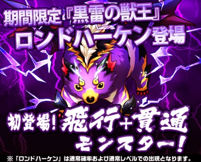 只要編為小隊長,就可根據玩家的戰略來組成一支擁有高攻擊力的小隊,只要成為我方就是一隻值得信賴的怪獸。隨著這次的活動,一般不會出現的超強力怪獸黑雷之獸王「朗特哈肯(ロンドハーケン)」將會在限定時間內出現。