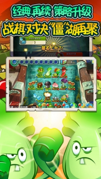 至於玩法的部份,遊戲則是改為讓玩家可以攜帶一定數量的植物卡牌上場戰鬥,在開戰前玩家可以佈置自己的植物陣型,一旦戰鬥開始後就只能移動後排軌道上的植物。戰鬥中,玩家消滅殭屍後將取得不同顏色的技能珠,一旦集滿計量表,還可讓旗下的植物發動特殊的主動寄進行攻擊。