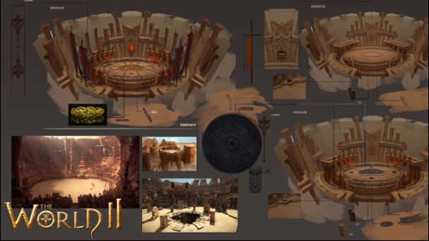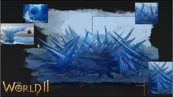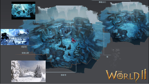 《世界二THE WORLD II》遊戲場景及栩栩如生的大怪獸BOSS完全是由堅強的美術團隊親手繪製而成!在遊戲封測前夕,營運團隊首度釋出如同電影場景般細膩的手繪圖及遊戲場景圖,例如:長年冰封寸草不生的冰原地、死沼原、每隔百年就會噴發的火山熔岩地、岩石高山區、皓皓白雪的冰原地及生死一瞬間的戰鬥競技場,畫面全曝光!