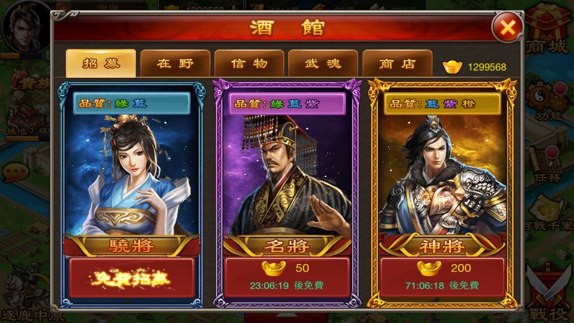 玩家在主城進入“酒館”就可以開始招募新武將啦!