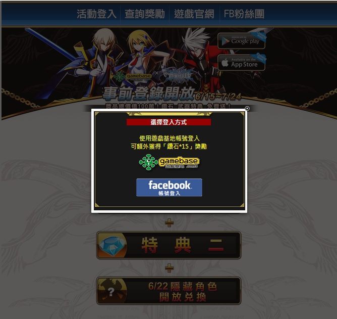【活動概要】:於活動期間,玩家可登入「遊戲基地帳號」及開放帳號(facebook、Google+)等會員帳號參加活動(以「遊戲基地帳號」登入可額外獲得30鑽獎勵)