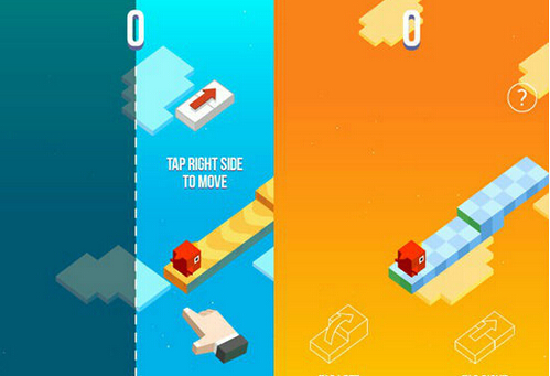 而遊戲的地形是分為平地與臺階的,如果只是一味點擊的話就會很容易出錯而導致遊戲結束,此時就要按照點擊左邊是上臺階,點擊右邊是平地前進這一規則來進行遊戲。隨著玩家的路程逐漸變遠,平臺崩塌的速度也會隨之變快,再加上地形頻繁切換,玩起來還是頗具挑戰性的。