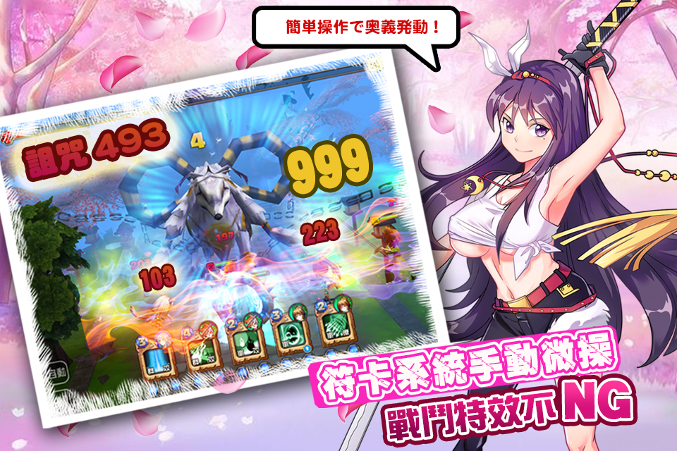 在遊戲玩法上,採用了創新的全即時戰鬥玩法。玩家只要在進行戰鬥時通過滑動或按兩下技能牌即可在戰鬥過程中快速釋放角色技能。並且按照規定的連擊順序釋放技能,就可以獲得超強的連擊BUFF,讓玩家能在輕鬆暢遊遊戲的同時制定最佳的應敵策略。戰鬥過程中,玩家也可以搜集到各式裝備及材料-御手,通過裝備御手讓式神增加額外的屬性!