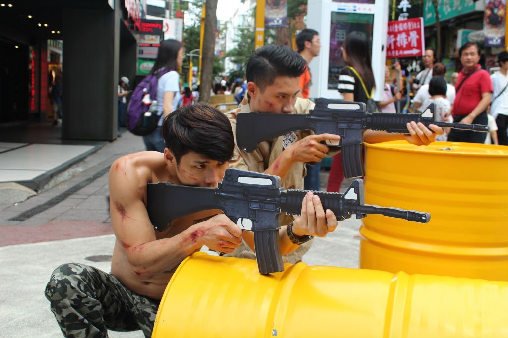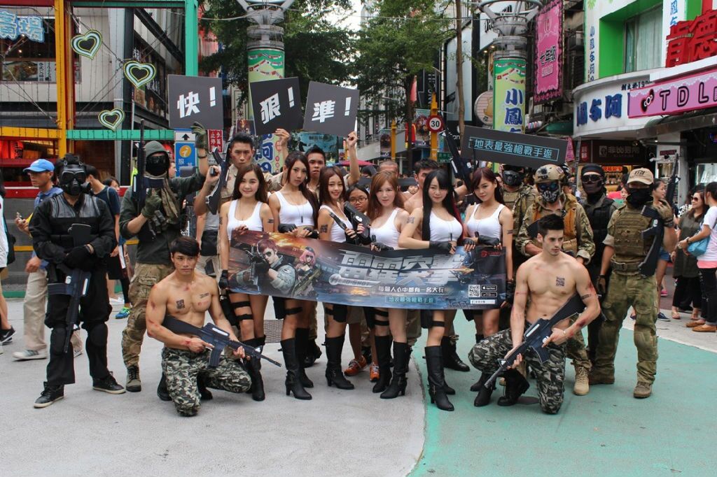 Garena 台灣競舞娛樂首款代理的真人即時槍戰手遊《 雷霆突擊 》,今(15)日出動18位猛男、大兵,以及突擊女孩,前往人聲鼎沸的台北西門町進行史無前例的街頭游擊戰快閃活動!驍勇善戰、配備精良的大兵加上雄壯威武的猛男,對戰擁有掩體優勢的戰地之花突擊女孩加上現場觀眾,最終突擊女孩展現巾幗不讓鬚眉的霸氣,將猛男大兵聯隊一舉殲滅!現場還出動了「越野之王」悍馬車前來助陣,霸氣巡迴西門町!