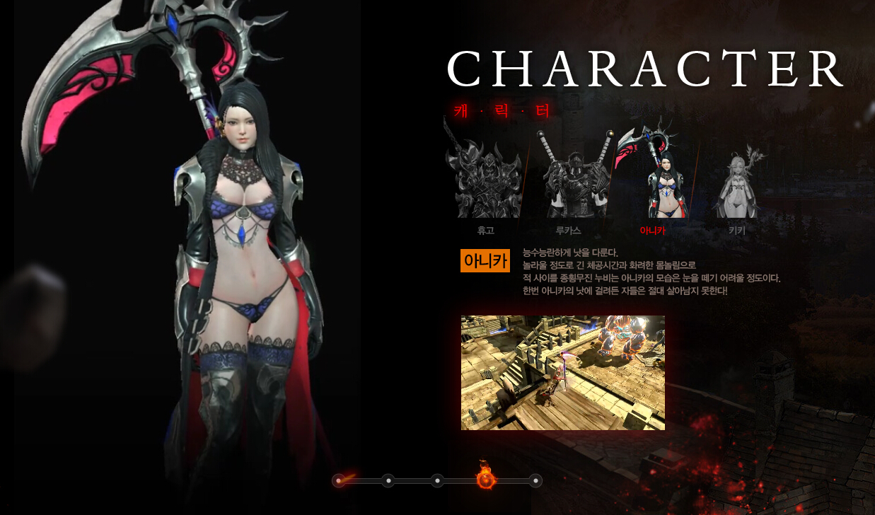 至於角色方面,目前官方公佈了使用劍攻擊的“修格”,用鐮刀做出華麗斬擊的“雅妮卡”,運用各種魔法擊退敵人的“琪琪”,和力量型的“盧卡斯”,剩下的角色也會在不久的未來正式登場。