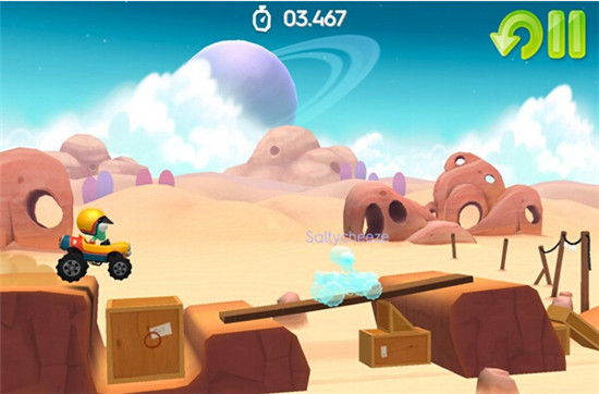 外星人在參考過人類的設計後,開始親手製作自己的高難度雜技飛車跑道。遊戲中玩家可利用內置的材料和工具,隨意製作任意難度的跑道。加上一些木箱,木橋等工具,一個頗有創意的飛車跑道就此誕生。製作完成後,如果你對自己設計的關卡信心十足,可以在遊戲中登錄 Facebook 賬號,將你的傑作分享給其他朋友。