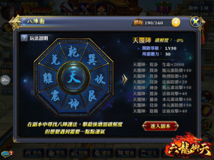 多人副本往往是玩家與好友之間的交流,好的副本不僅可以提升玩家之間的友誼,還可精進玩家於遊戲中的技術。於《 六龍御天 》中設有數個多人副本,玩家可約 3~5 名好友一同組隊挑戰,亦可透過遊戲中 AI 系統自動尋找戰友,於副本中,玩家不但要與好友共同配合作戰,還要精練自己的戰鬥技巧,如此一來才能獲得S級以上的高評價,於副本戰鬥結束後,評價愈高時,所能或得的獎勵也愈豐厚,其各職業的主要武器、裝備進化材料與神器洗練材料,都在多人副本中掉落喔!玩家們可別錯過練技術與打材料的好機會。
