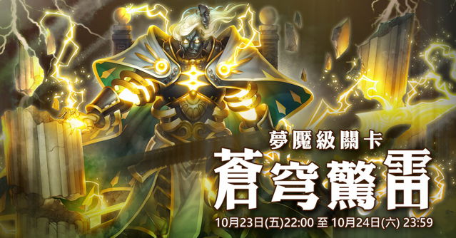 『宙斯』暴怒衝出星宮迎戰,未通過「黃道十二宮」的玩家也將遇上衪掀起的殛雷電擊。在「蒼穹驚雷」全新追加的夢魘級關卡中,強化符文的力量將指引玩家在首批神族守衛手中累積力量,隨後的守衛將在失去同伴時加強防衛,奮起進行反抗。