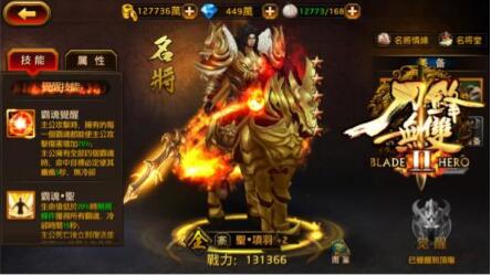 在遊戲中現身的項羽當然也是一名強力豪傑名將,不只享有騎在寶馬上浩蕩萬千的優勢,威猛無比的進攻態勢與技能施放,可使主公化險為夷。霸魂覺醒後,還可傷害加倍、恢復生命值,多重職業屬性運用,項羽一人就可掌握全部,吃死敵方!