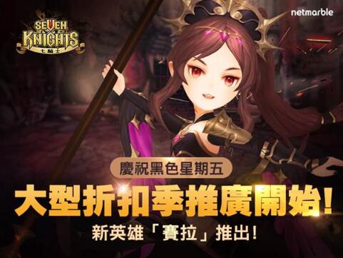 網石遊戲 (Netmarble Games) 今(24)日宣布旗下人氣RPG手機遊戲《 七騎士 》將與全球同歡,藉由推出大型折扣季等特色活動,一同慶祝黑色星期五(Black Friday),而新魔法英雄「賽拉」也在此時推出,與玩家歡慶佳節。