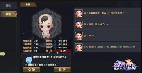(圖:《 靈狐仙境 》餵養寶寶功能介面)