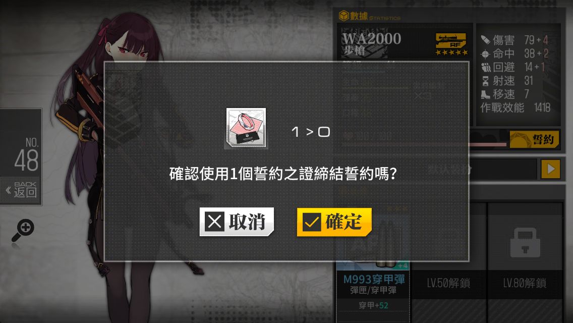 少女前線 –「誓約烙印」可從角色介面的「誓約」進行