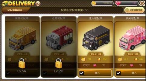 隨著等級上限的提高,百貨公司也發展出利用宅配車機動配送物品的多元化貼心服務,除了可以替顧客解決血拚後大包小包手提回家的冏境,也能同時發展線上購物,滿足線上同步採購的消費者。依據運送時間(路程)的不同,可配送2件-144件不等的包裹,力求最快速度將商品直送消費者手中,替百貨公司另創財源。