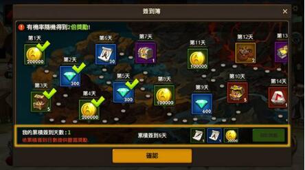 除原本每日簽到簿獎勵外,新增了累積簽到簿獎勵。自5/31改版開始依照累積獎勵,只要每天登入就可將自身隊伍變得更加強大。