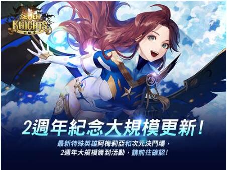 為了慶祝2週年紀念,《 七騎士 》推出全新特殊女英雄「阿梅莉亞」。阿梅莉亞擁有不同於其他英雄的獨特外表,並已知她透過魔法進入 七騎士 的世界。