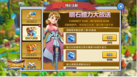 征戰四方很過癮,但總是短缺的鑽石與體力,真讓人沒勁啊!如果這是領主您由衷的心聲,您沉默之時,官方全為你想好囉!活動期間,達成各式指定條件,官方備有豐厚的鑽石與體力,讓您鑽力滿滿,打仗無負擔!