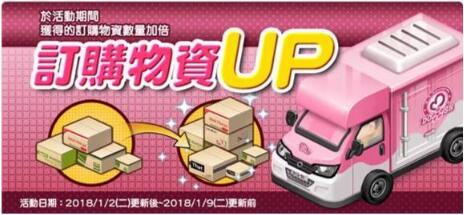 2018/01/02(二)更新後~2018/01/09(二)更新前,活動期間,向任何通路採買各專櫃上架商品所需的物資,一次訂購就能雙倍滿足,讓百貨專櫃銷售運作更加便利。