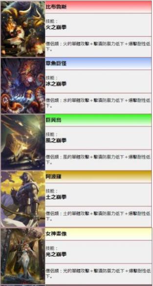 「比布魯斯」「章魚巨怪」「巨翼鳥」「阿波羅」「女神畫像」「魯傑耶&巴魯納巴」是僧侶類的新技能卡。