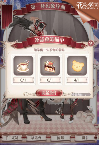 2.      茶點為紅茶、餅乾、蛋糕3類,3類茶點必須同時具備才能開啟【茶話會】。