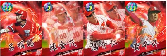 打者S卡則包含不論在國家隊或是中職都佔有重要一席之地,19歲就加入味全龍、攻守俱佳的「張泰山」!還有曾經連續4場擊出全壘打的選手「陳金茂」;非常會打全壘打的二壘手「羅世幸」;擁有速度、強肩,撐起味全龍最堅強外野防線的「黃煚隆」、「林易增」;擁有優秀長打能力的「馬斯M.H」與「喬坎那G.C」,這些傳奇球星是紅潮不滅的重要靈魂,更是你邁向勝利的功臣,千萬不要錯過!