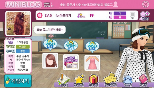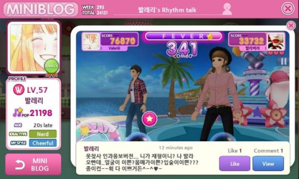 戀愛之星 》均能開設個人迷你部落格,玩家可在自己的部落格置換大頭照及基本資料之外,還能寫下每天的心情日記,更能拍下與好友尬舞的截圖上傳到部落格當中,並且好友還能在每則貼文中回覆,加強離線
