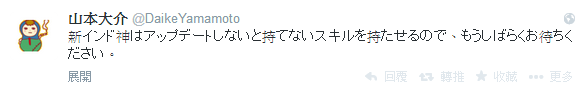 另外也轉載一下遊戲開發者 山本大介 在Twitter提起的消息。
