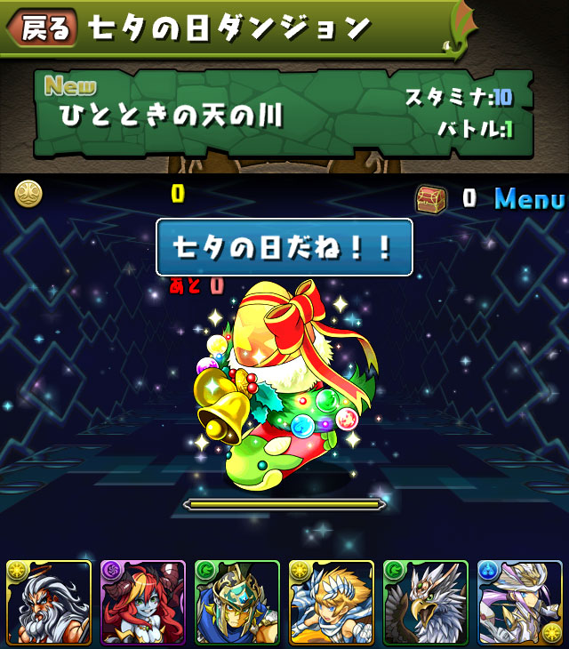 7月7日 七夕期間,官方將會開放禮物關卡「七夕地下城(七夕の日ダンジョン)」限定開放一天。本地下城僅限通關一次,可以得到隨機屬性的「聖誕龍」一隻。