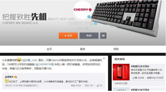 對此, 小米 生態鏈產品規劃總監孫鵬也進行了回應,稱「只要Cherry中國按照成本價供給 小米 ,去掉管道利潤,199就可以買到機械 鍵盤 」。 從網友的跟帖來看,還是有很多人希望 小米 推出這樣一款機械 鍵盤 ,至少價格上是很有競爭力的。