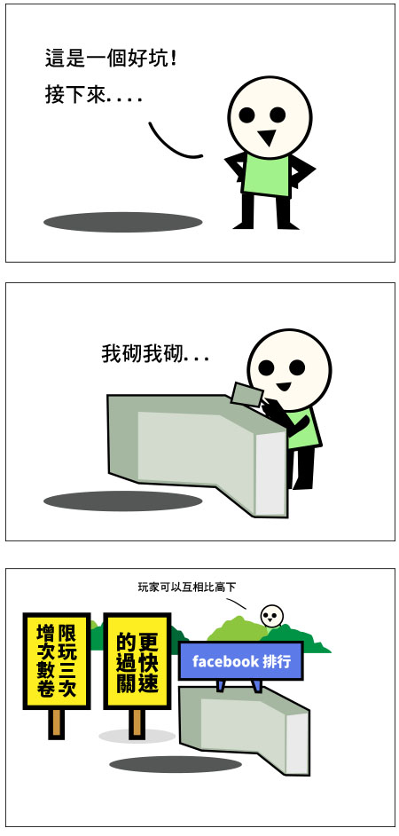遊戲 的「坑」有很多種,其中最常見的坑,就像下面這樣。