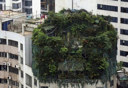 中国廣州,一個19層樓高房子違規樓顶别墅,被植物覆盖住,但到目前還找不到所有人。翻攝《中國日報網》